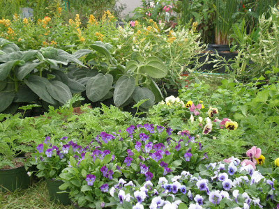 Staging plants...got Tibouchinas, Yellow Cestrum, pansies, Citronella geraniums galore